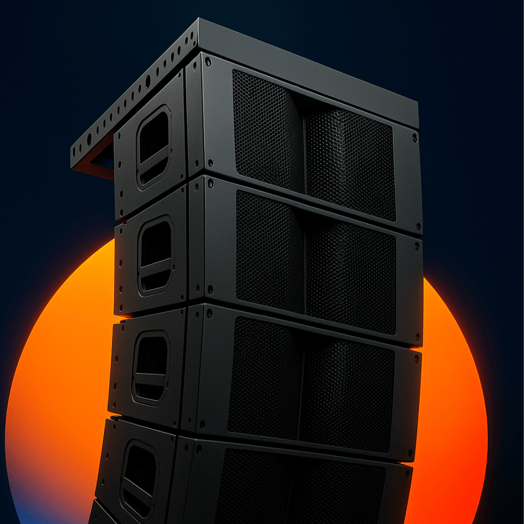 Caixas acústicas, line arrays, amplificadores, mesas de som.