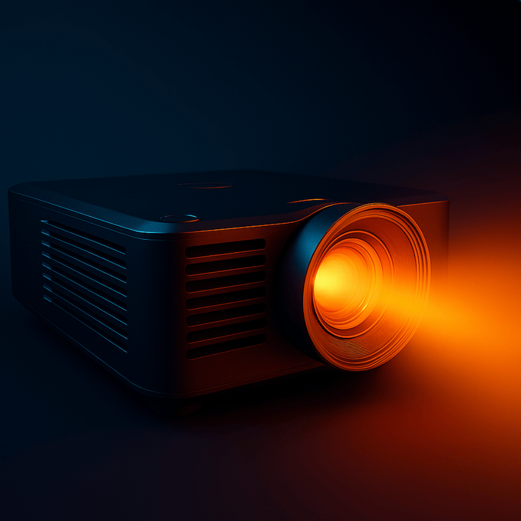 Laser, alta luminosidade, telas retráteis e projeções fixas.